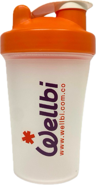 Nuestro shaker está diseñado para que preparar tu WELLBI sea rápido, práctico y sin grumos, estés donde estés.